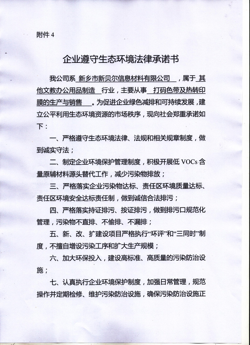 新鄉(xiāng)市新貝爾信息材料有限公司排污信息公示